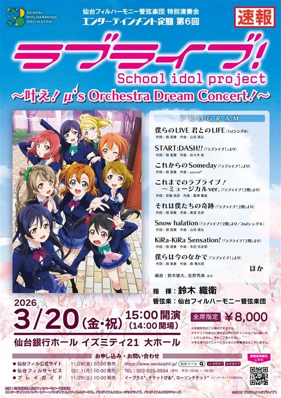 ラブライブ!×仙台フィルハーモニー管弦楽団のスペシャルコンサート開催決定!